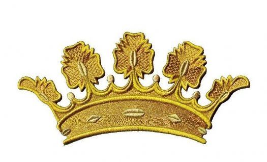 CORONA BORDADA A MAQUINA. MATERIAL HILO DORADO. Su TAMAÑO ES DE 19X9CM. Su PRECIO ES DE 70,18 EUROS UNIDAD.