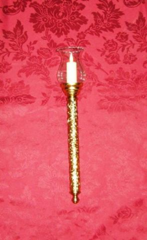 Material orfebreria,dorado. Largo 33cm,mas 11cm del guardabrisa Se utiliza con antorcha de pilas.